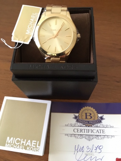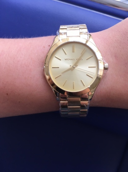 Mam do sprzedania oryginalny zegarek Michael Kors model MK3179. Zegarek został zakupiony dwa tygodnie temu w sklepie internetowym www.brasty.pl. Niestety okazał się nietrafionym prezentem urodzinowym dla żony. Według mnie jest piękny, żona ma jednak inne zdanie. Model Michael Kors Slim Runway jest minimalistyczny, ale rzuca się w oczy. Cały jest w złotym kolorze. Żona nie była zadowolona z wielkości, ponieważ ma bardzo drobną rękę. Myślę, jednak że komuś z większym nadgarstkiem, zegarek przypadnie do gustu i będzie zadowolony z jego użytkowania. Zegarek posiada wszystkie folie ochronne. Jest zapakowany w oryginale pudełko, wraz z instrukcją obsługi w języku polskim. Produkt jest objęty 2 letnią gwarancją sklepu internetowego Brasty.pl Załączam realne zdjęcia oraz link do oferty na stronie: https://www.brasty.pl/zegarek-damski-michael-kors-mk3179.